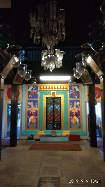 सभामंडपातील लाकडी खांबावर सुप्रसिद्ध चित्रकार राजा रविवर्मा यांनी काढलेली चित्रे आहेत.